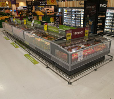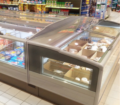 Isla de congelados de grupo incorporado que funciona con gas propano R290. Completamente transparente, se caracteriza por el fácil acceso a los productos, la flexibilidad y la modularidad, completada por la facilidad de instalación.